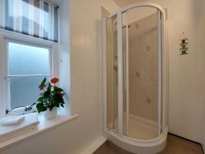 It is a spacious first-floor double room at the front of the house with views of magnificent pine trees and Hollerday Hill. It is furnished with a standard size double bed and the en-suite is fitted with a shower, wash-basin and toilet.